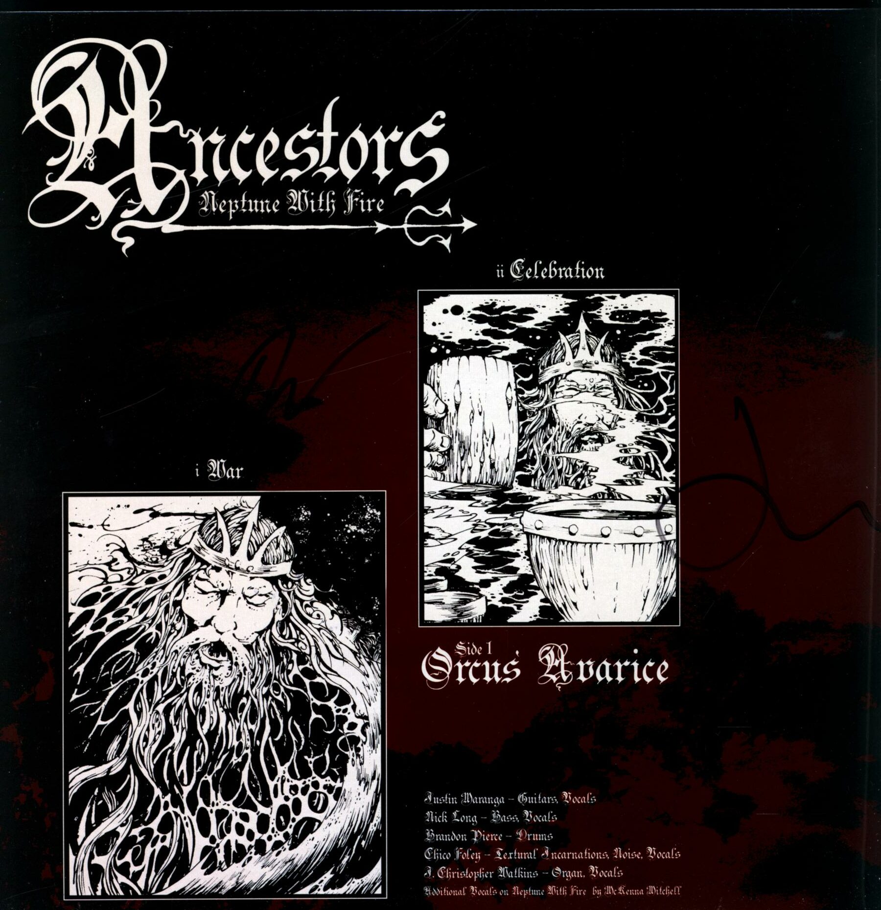 inside of the gatefold signed by Nick and Justin