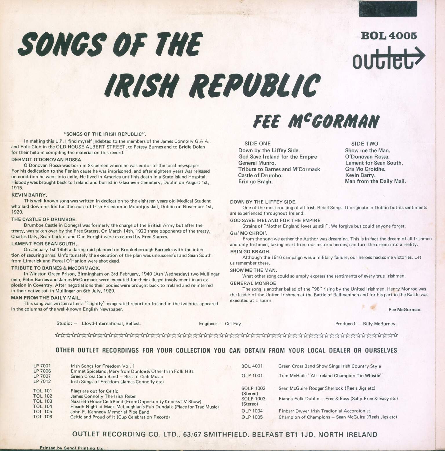 1 x LP VinylSongs Of The Irish Republic