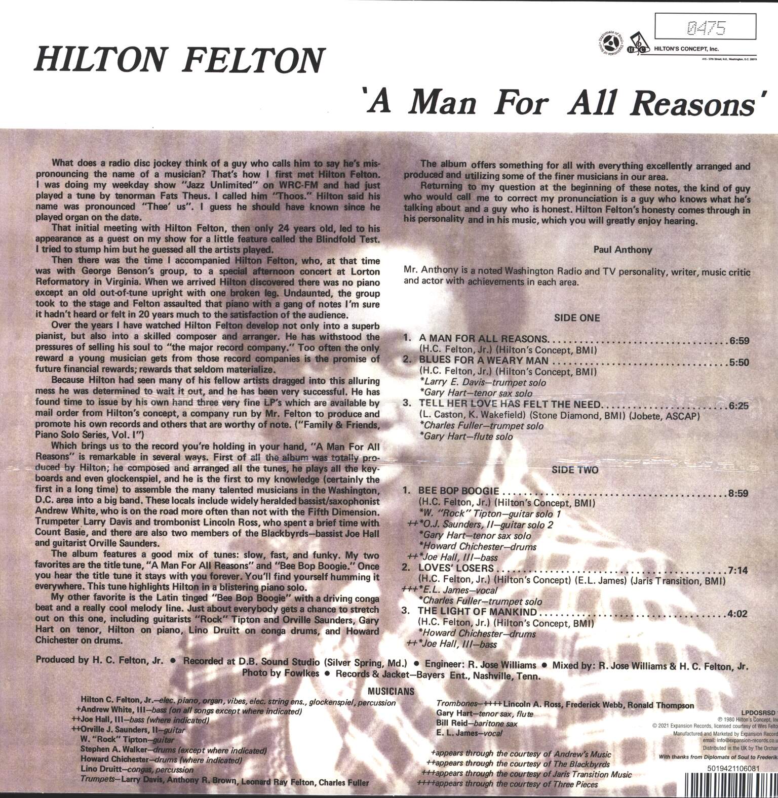 Electric Piano, Organ, Vibraphone, Synthesizer [Electric String Ensemble], Percussion, Glockenspiel, Producer, Arranged By – Hilton Felton (tracks: H. C. Felton, Jr.)