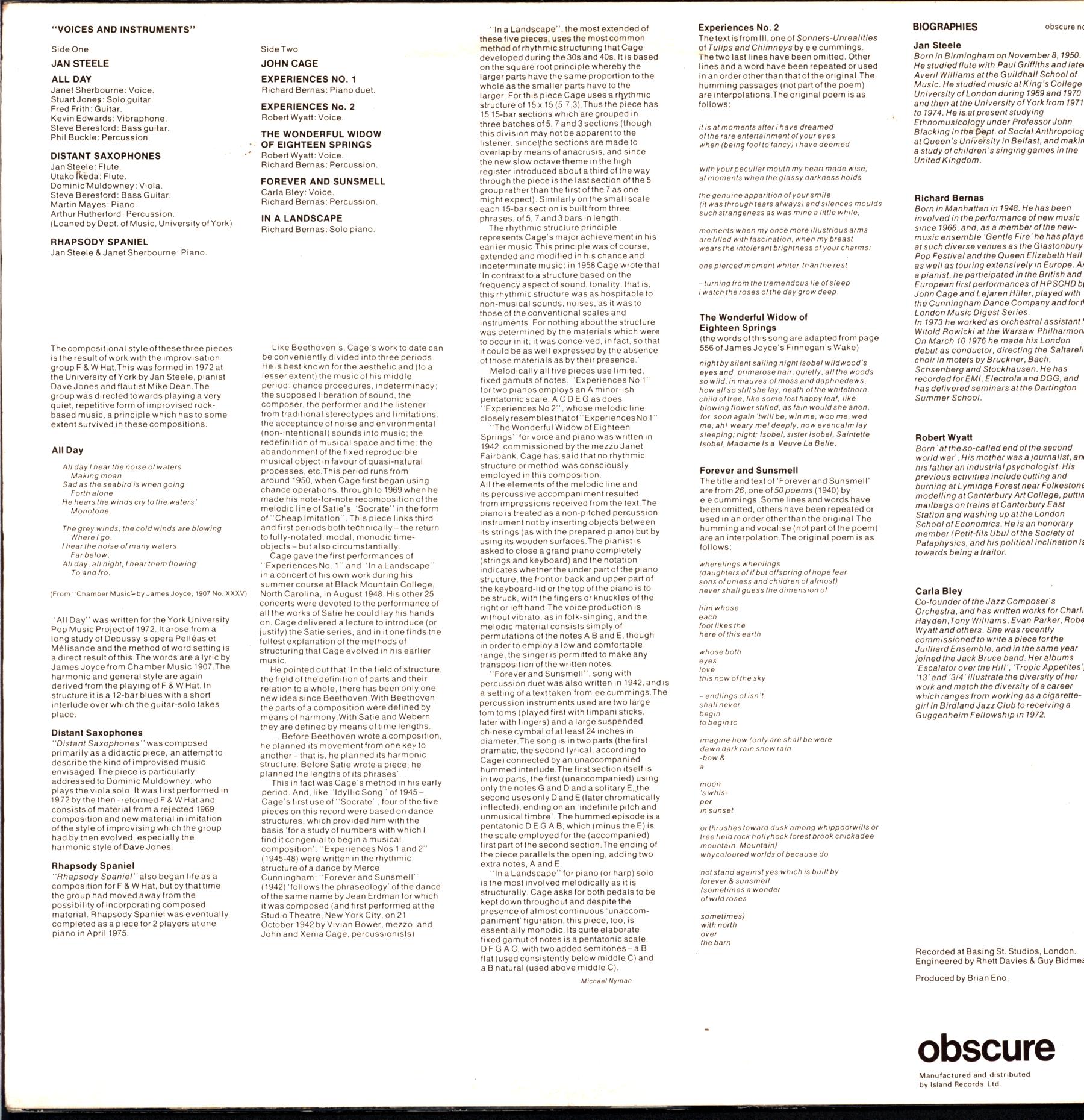 Obscure (2) obscure no. 5, Island Records obscure no. 5