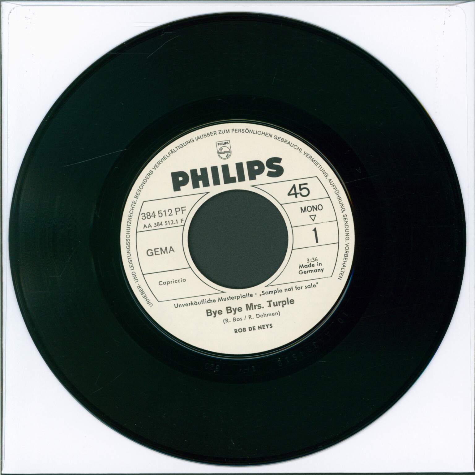 German promo edition with white labels with black print: "Unverkäufliche Musterplatte / Sample not for sale". Comes with picture sleeve.