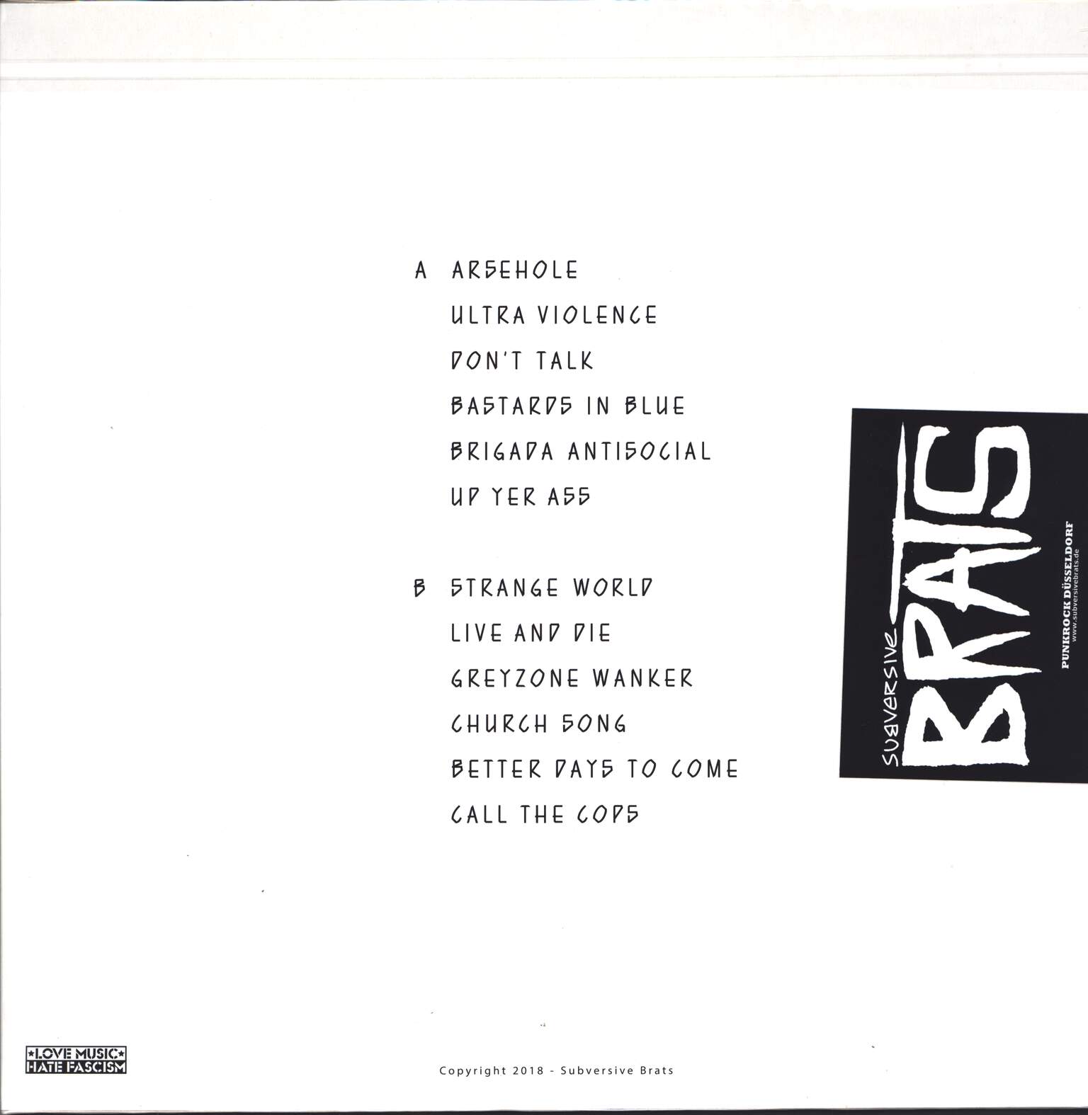 neue LP der Düsseldorfer Street Punk Band, 12 Tracks mit Textblatt und Sticker