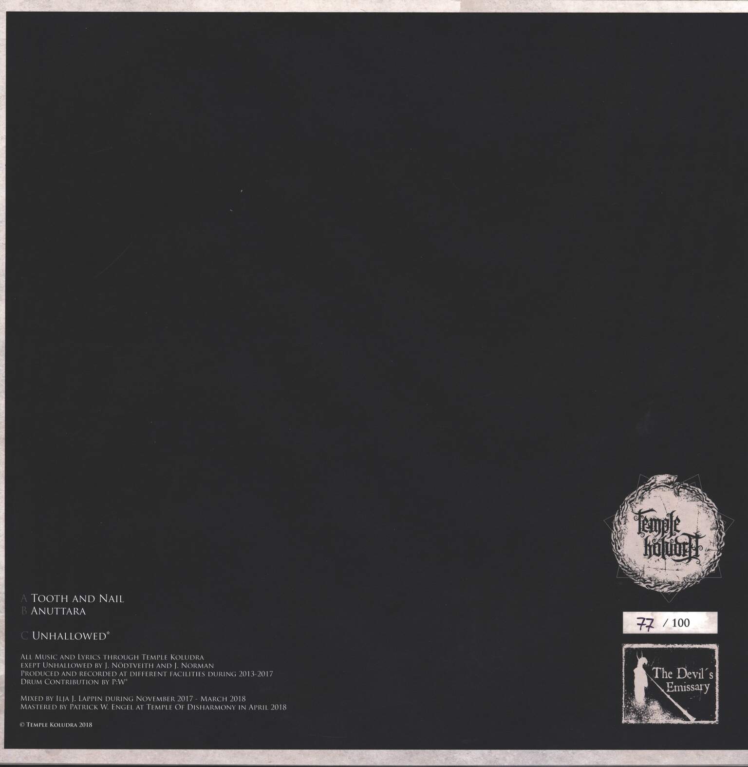 limited edition of 100 numbered copies on "white/smoke" vinyl, includes sticker