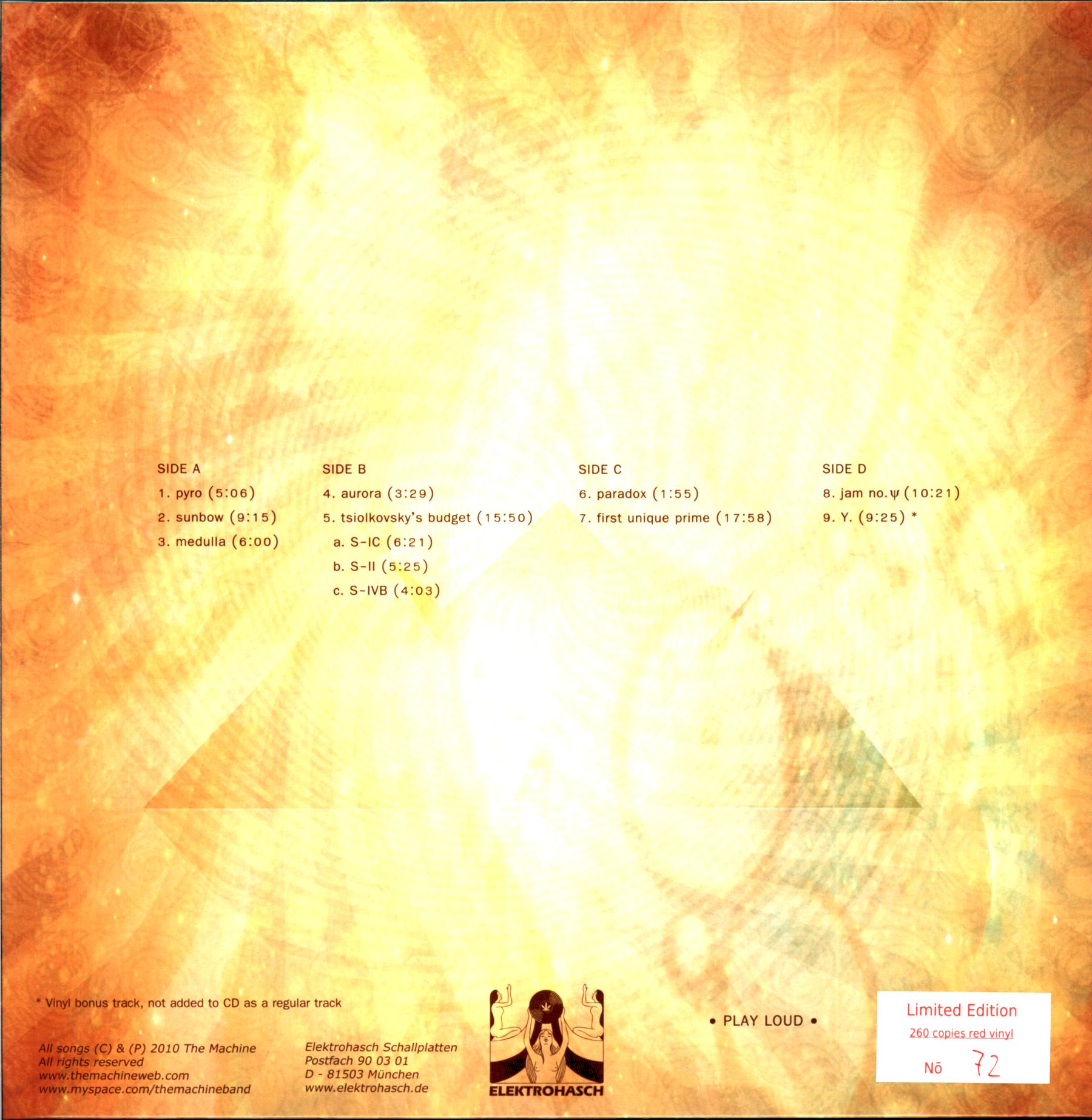 Limited hand numbered edition of 260 copies on red vinyl (this is #72), gatefold sleeve.