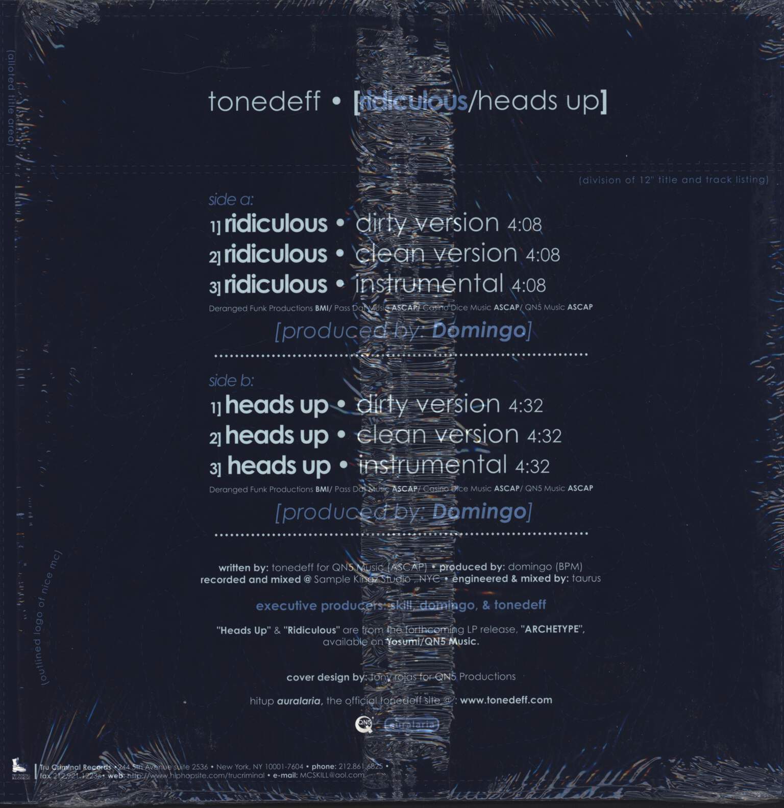 1 x 12" Maxi Single VinylRidiculous / Heads Up