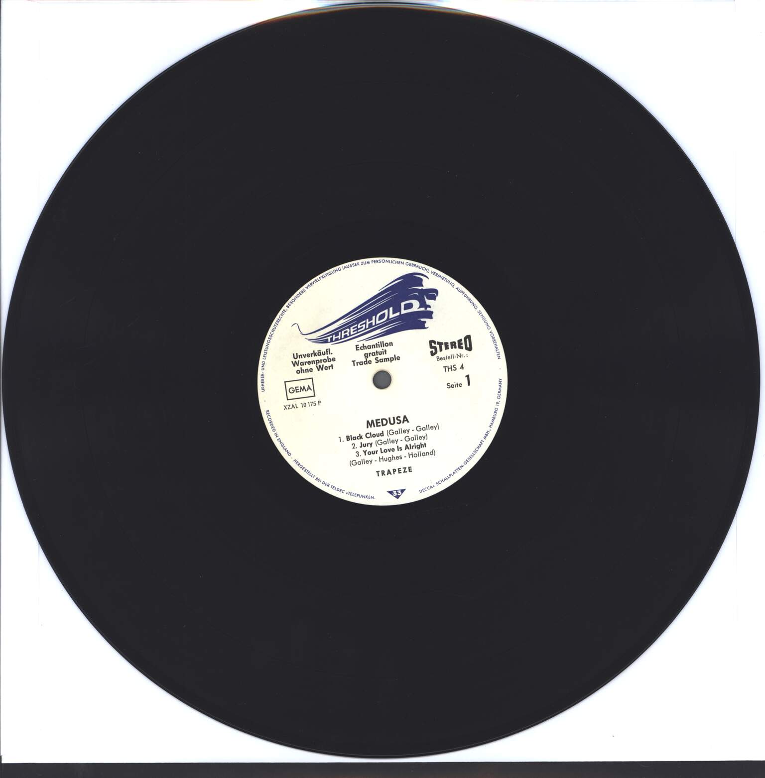 several surface marks on vinyl, plays with slight crackles on my Technics SL1210
