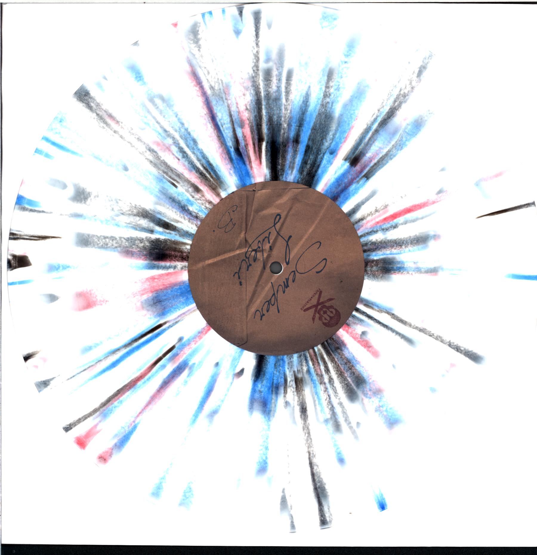 White vinyl with red/black/blue splatter, with insert.