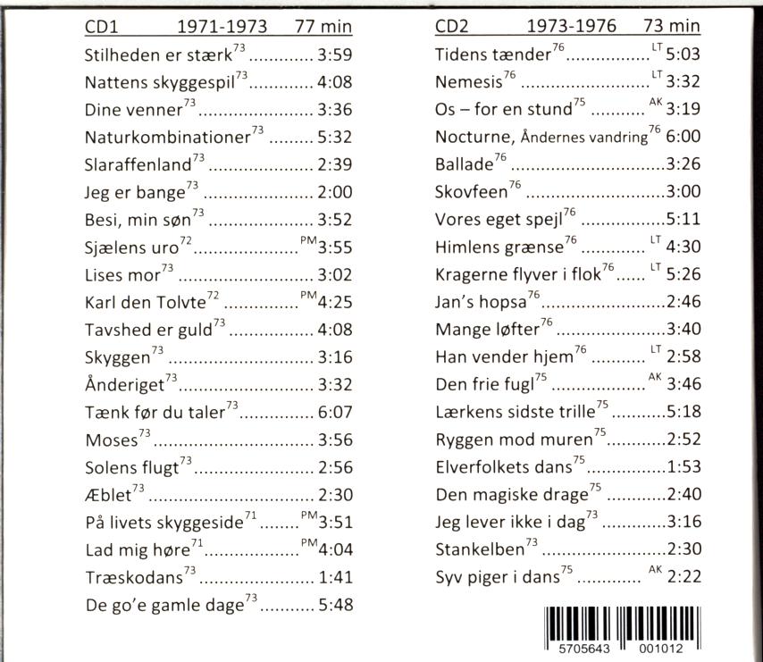 | 1-6 | Jeg Er Bange | 2:00 |