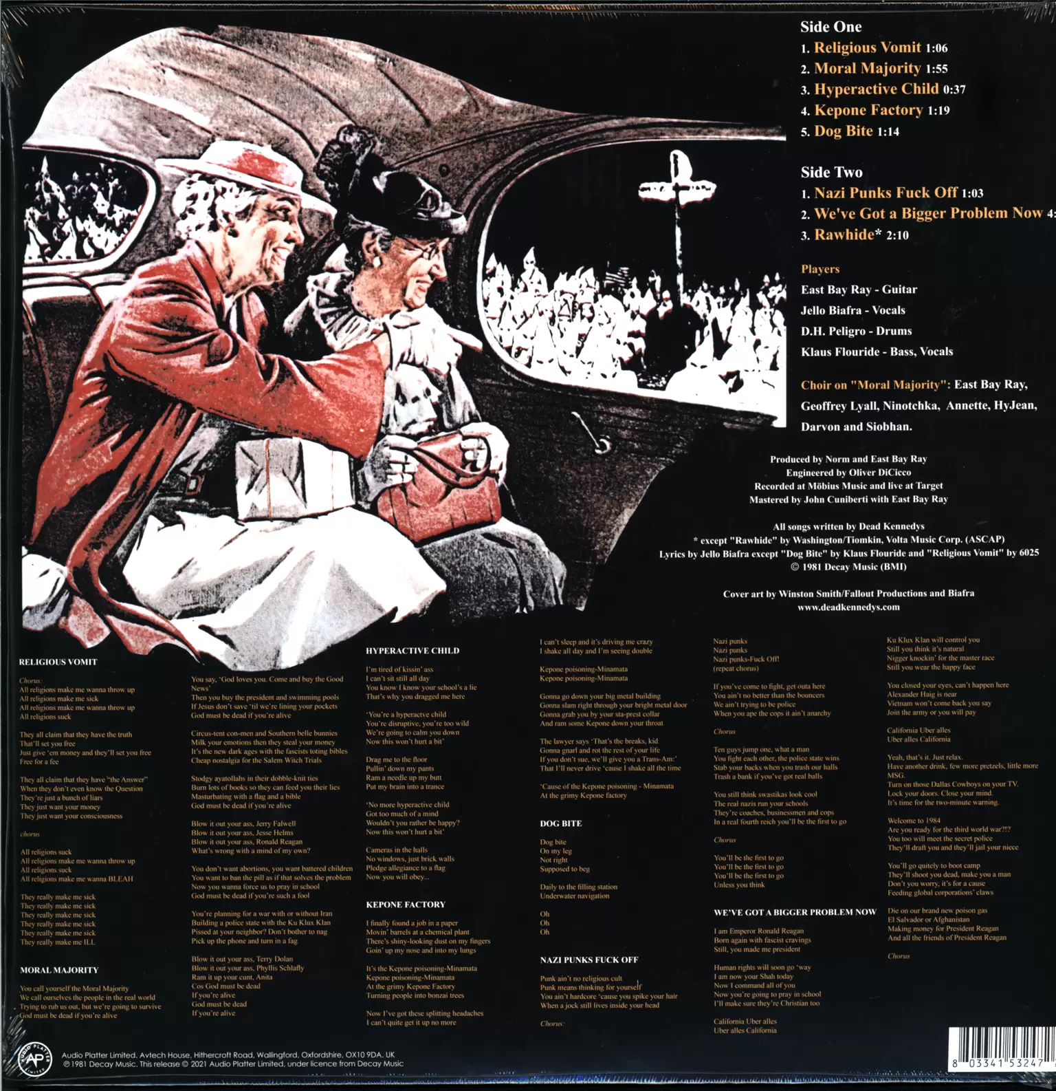 Written-By – Biafra* (tracks: A2 to A4, B1, B2), Flouride* (tracks: A5, B2)