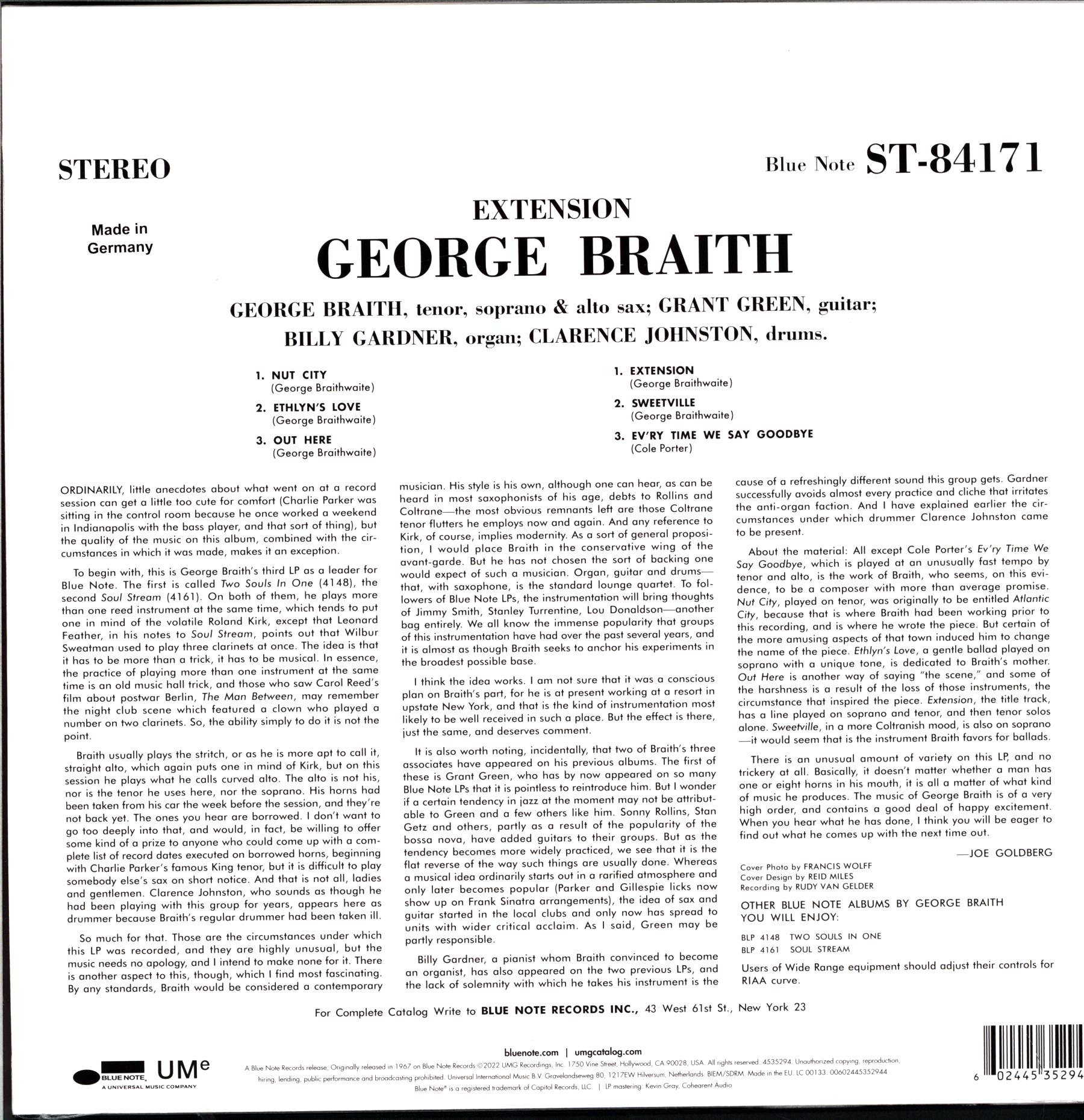 Blue Note 4535294, UMe 4535294, Blue Note 84171, Blue Note BST 84171, Blue Note ST-84171, Blue Note 00602445352944, UMe 00602445352944