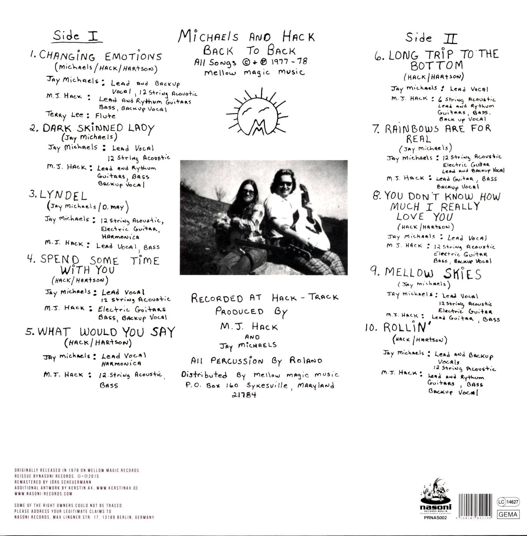Backing Vocals – Jay Michaels (4) (tracks: A1, B2, B5), M.J. Hack (tracks: A1, A2, A4, B1 to B3, B5)