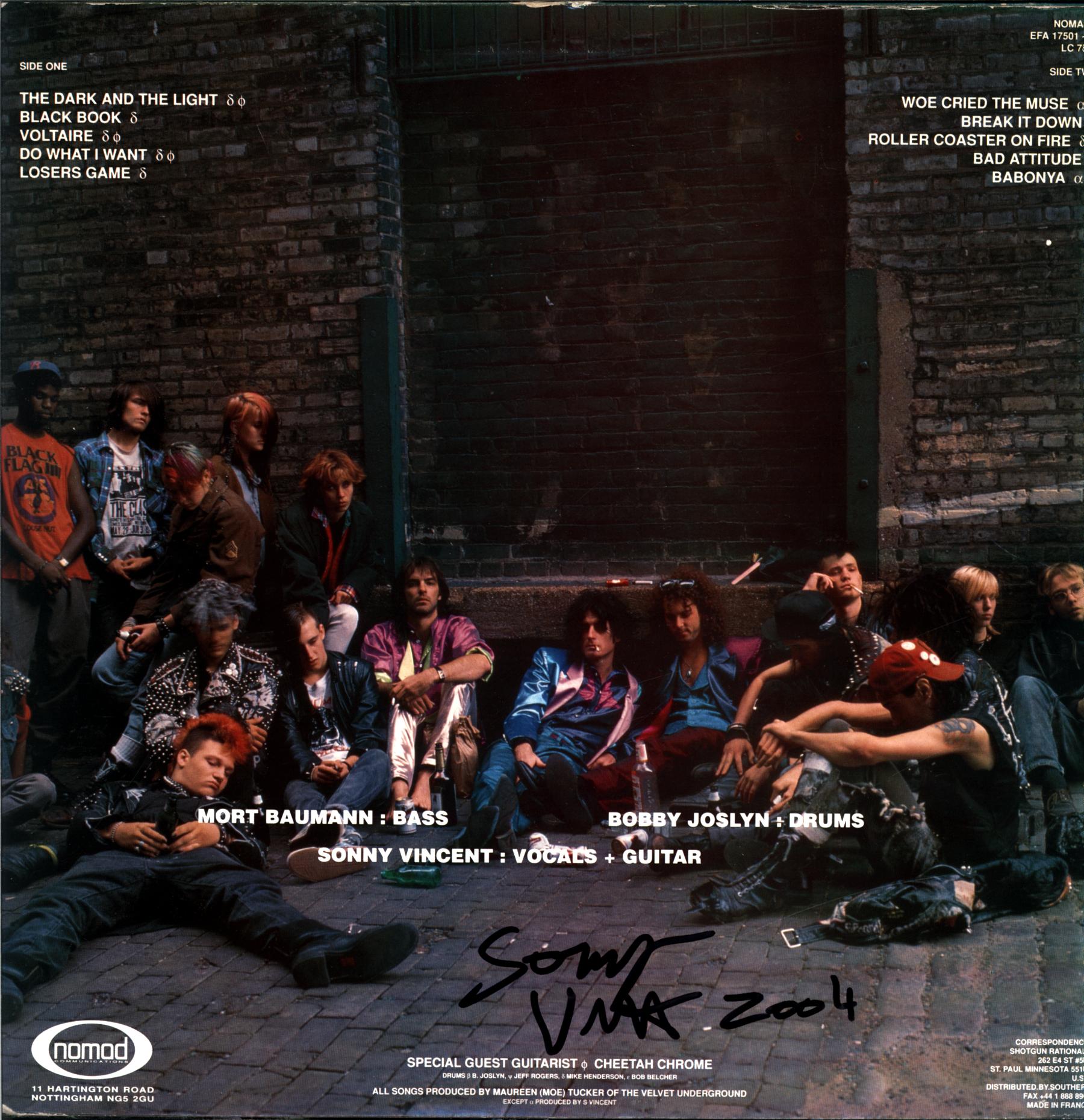 Back sleeve signed by Sonny Vincent, includes insert.