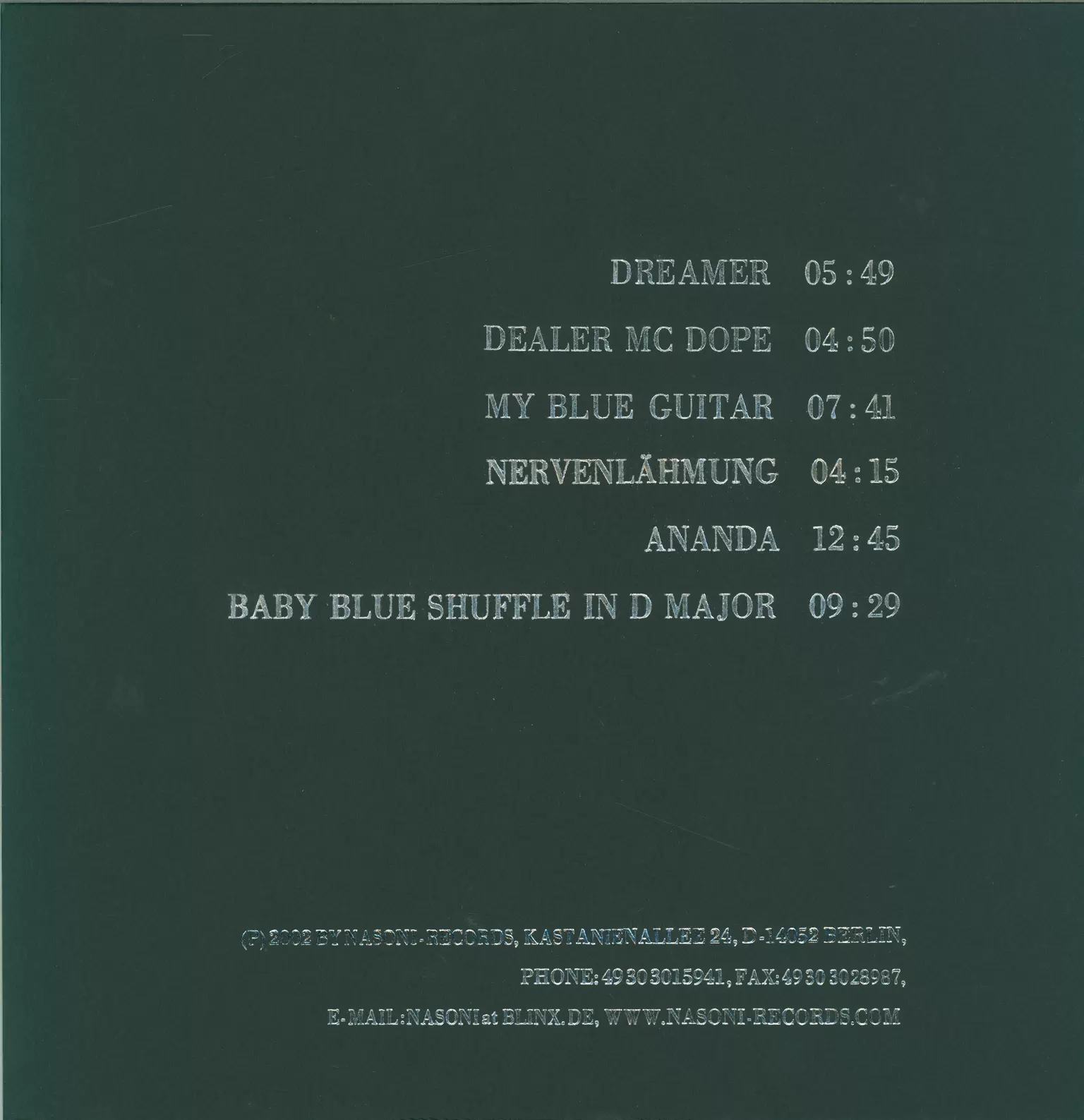 Hersteller: Nasoni Records, Carola Wutschig, Max-Lingner Str. 17, D- 13189 Berlin, Germany, [email protected]