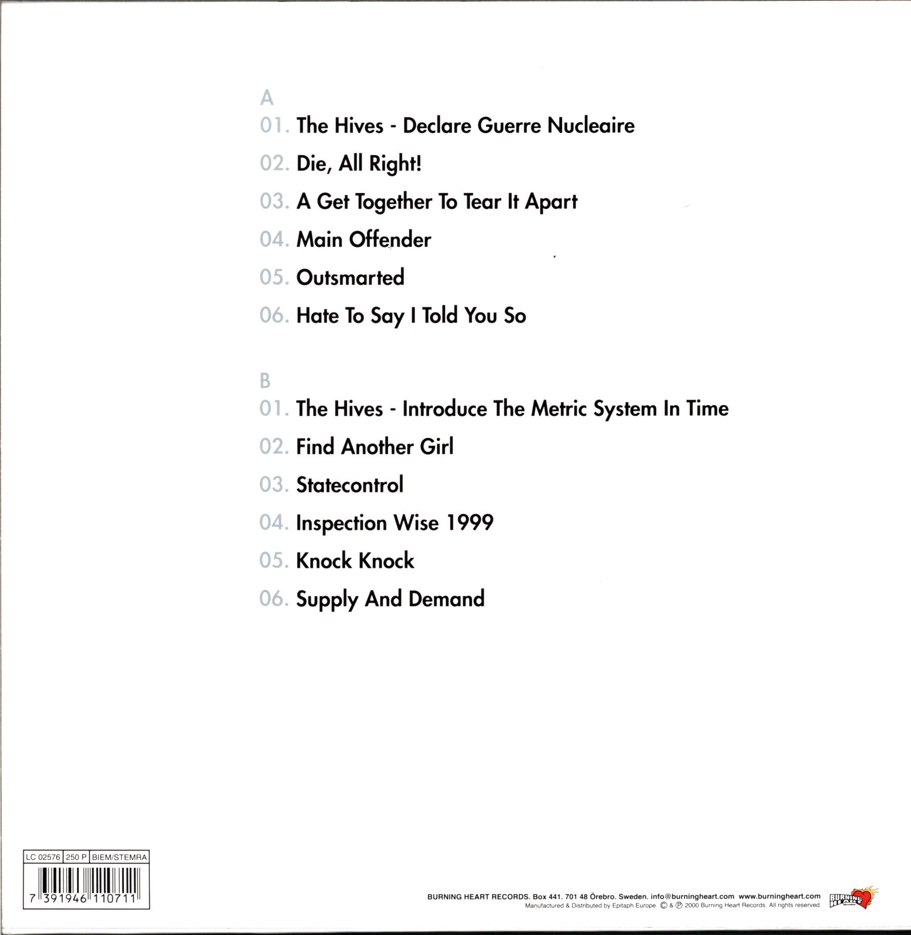 | B1 | The Hives – Introduce The Metric System In Time | 2:06 |