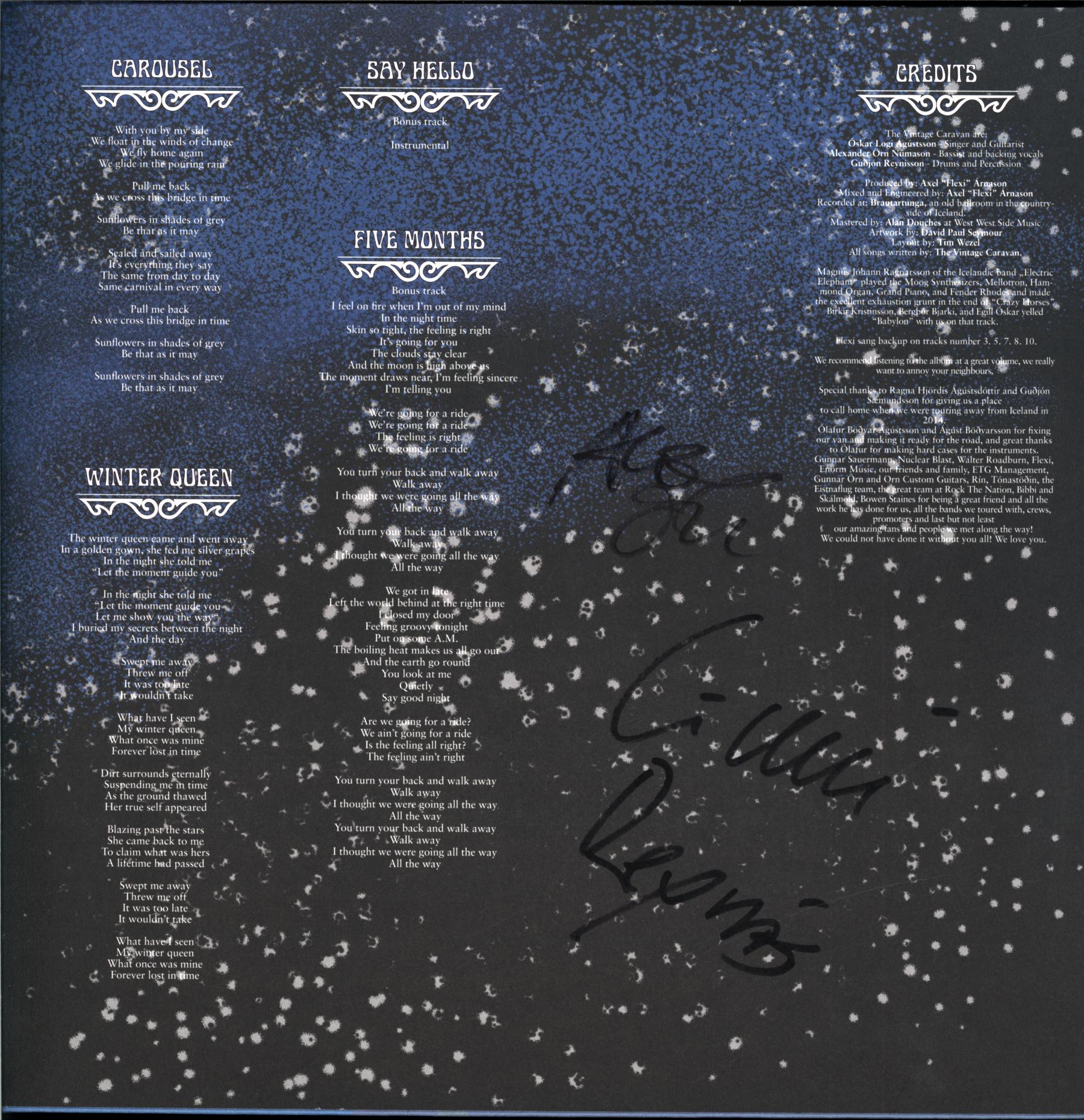 Signed by Alex, Óskar and Guðjón inside the gatefold.